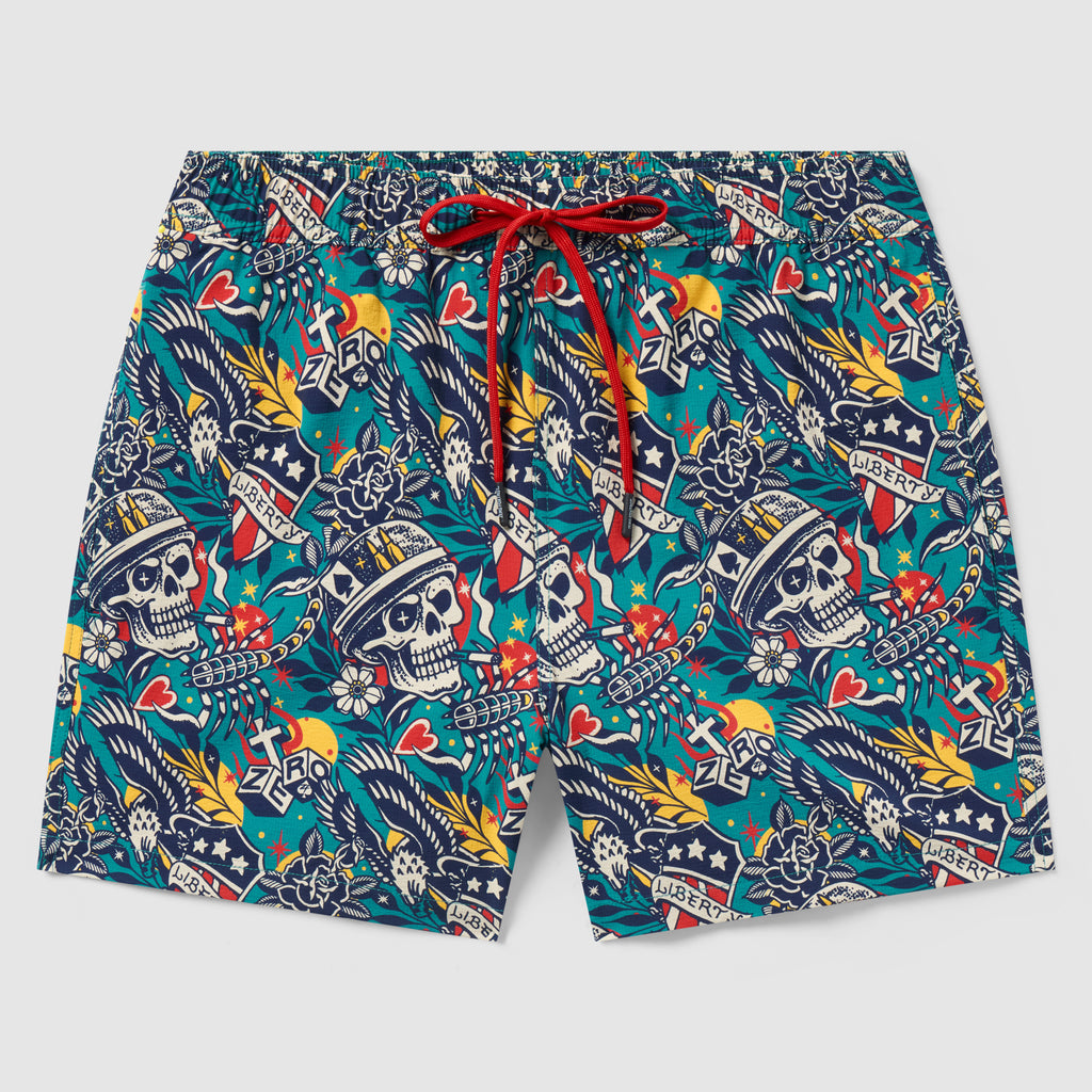 Get ready for the 2026 swim season with our 'back by popular demand' Swim Trunks featuring a light weight fabric with a soft hand feel, excellent fit, refined details and 5" inseam. Featuring quick-drying and breathable fabric, multiple pockets for your belongings and a silky, anti-chafe lining for your junk. These trunks, in our sick 2026 graphics, offer everything you need to stand out while catching waves between mortar fire. Swim or surf with extreme prejudice.